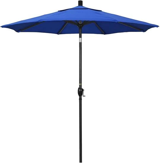 These umbrellas measure 7.5 feet in diameter and feature an attractive black aluminum pole with matching ribs with Olefin fabric umbrella material. Olefin is a higher grade fabric over Polyester, durable and UV resistant against color fade. This umbrella has a crank lift and auto tilt for ease of use.
