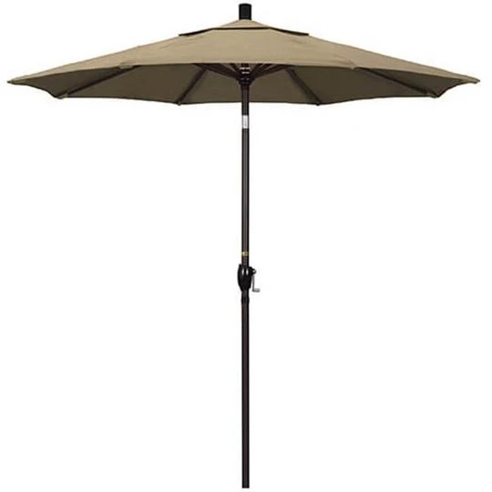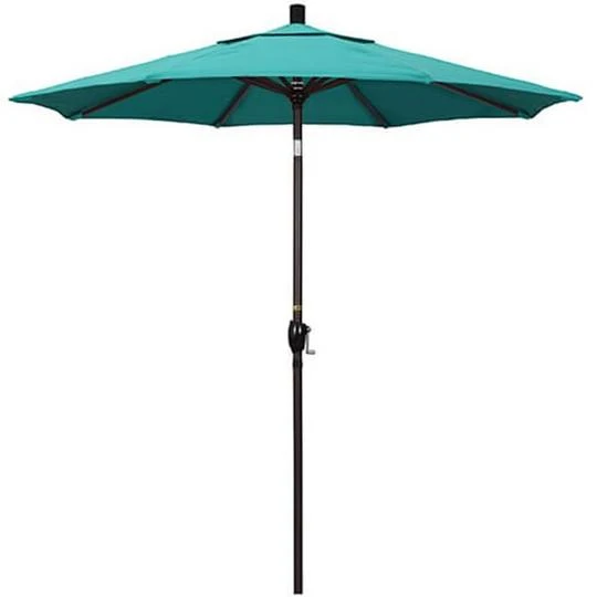 These umbrellas measure 7.5 feet in diameter and feature an attractive bronze aluminum pole with matching ribs with Sunbrella® fabric umbrella material. Sunbrella® is the highest grade fabric over all other outdoor-use fabrics, durable and the most UV resistant against color fade with a 5 year anti-fade resistant warranty for many years of use. Raising and lowering is made easy by way of a crank handle, and the pole design offers a push button tilt option.