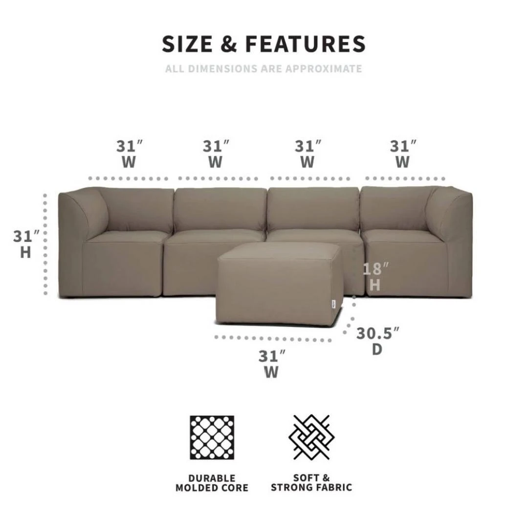 - Dimensions – Corner Chair: 31″W x 30.5″D x 31″H | Weight: 21.7 lb