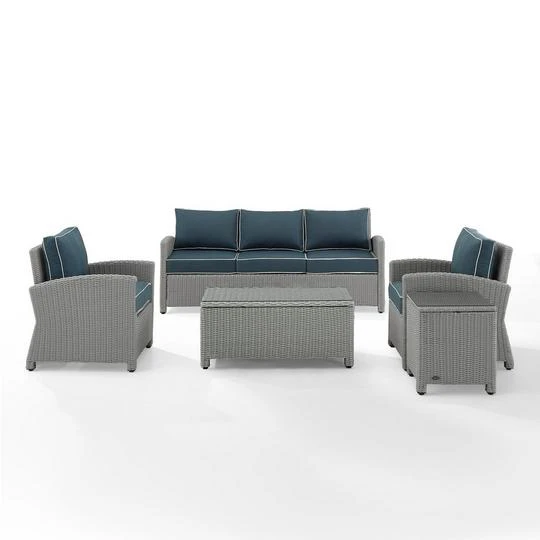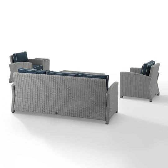 Gather with friends for an evening under the stars with the Bradenton 5pc Sofa Set. Each piece of the set features sturdy steel frames wrapped in beautiful all-weather wicker. The sofa and armchairs are stylish and comfortable with gently arched arms and thick moisture-resistant cushions. A glass top coffee table and side table tie the whole seating arrangement together, making outdoor entertaining a breeze with the Bradenton conversation set.