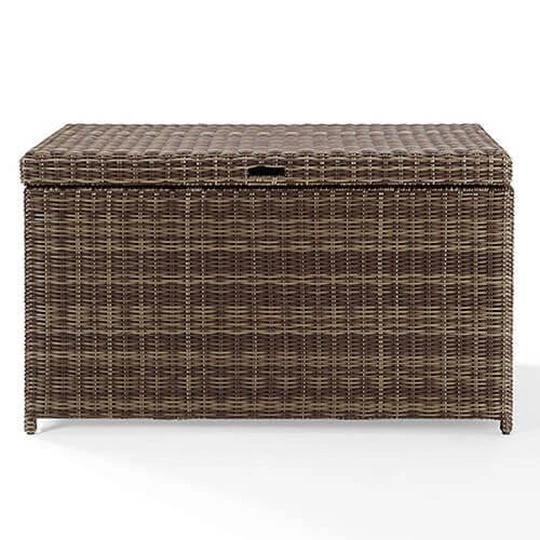 Your outdoor entertaining is kept organized with the Bradenton Storage Chest. The sturdy steel frame is woven over with UV resistant resin wicker, and offers a full coverage plastic lid deck, ensuring safety for its contents.