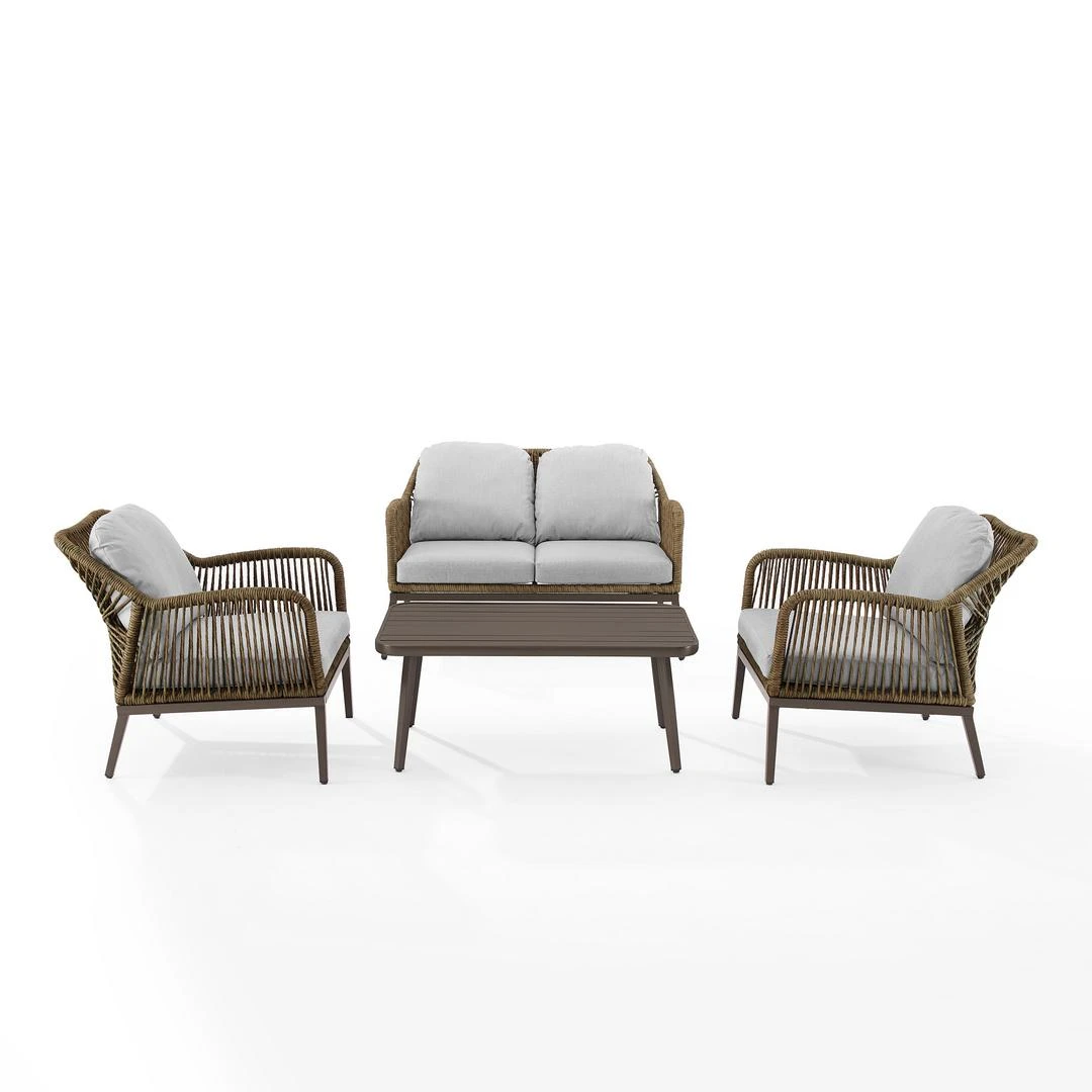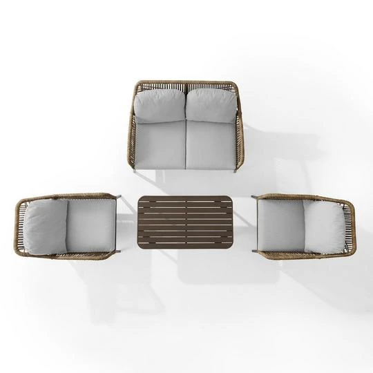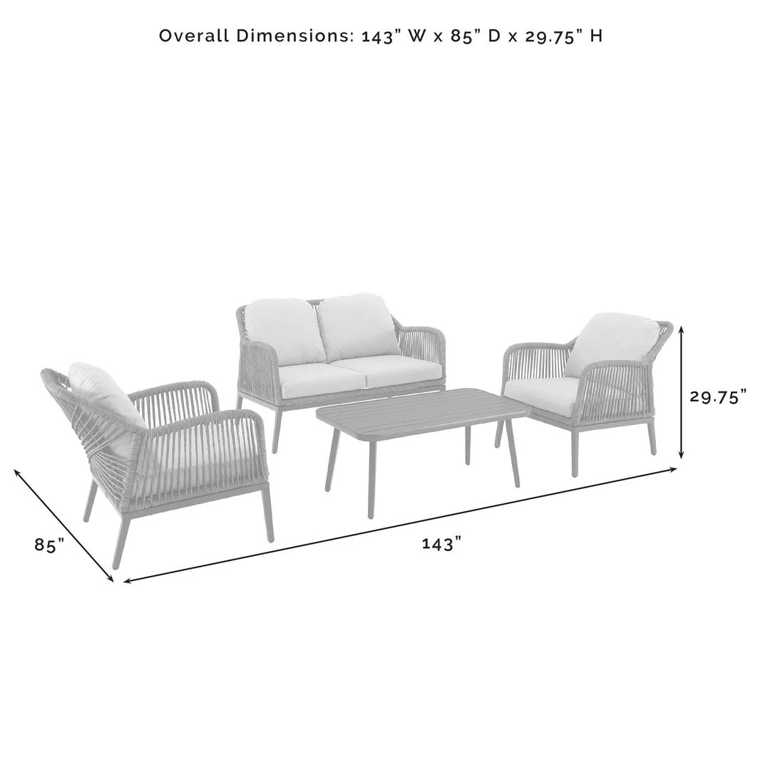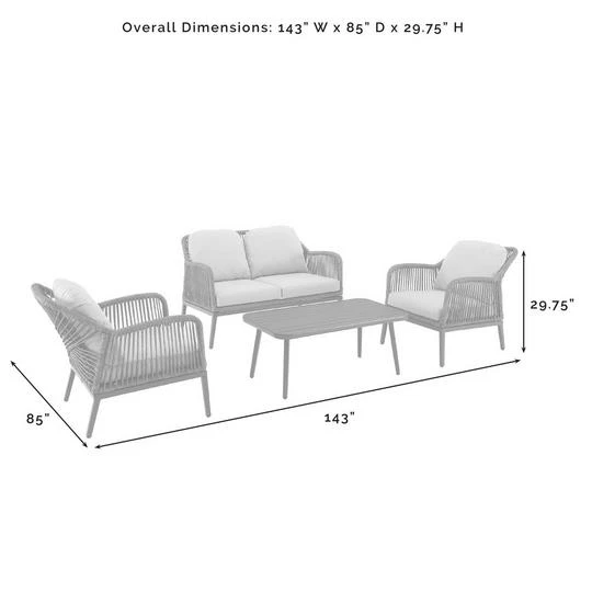 The Haven 4pc Conversation Set delivers an on-trend look in a traditional package with the look of natural rope over powder-coated steel. Outfitted with lush weather-resistant cushions, the loveseat and chairs offer a fetching retreat from the daily grind, while the metal slatted coffee table provides a sturdy place to rest a drink. With the perfect balance of modern metal and boho chic, the Haven Conversation Set will have you relaxing in style.