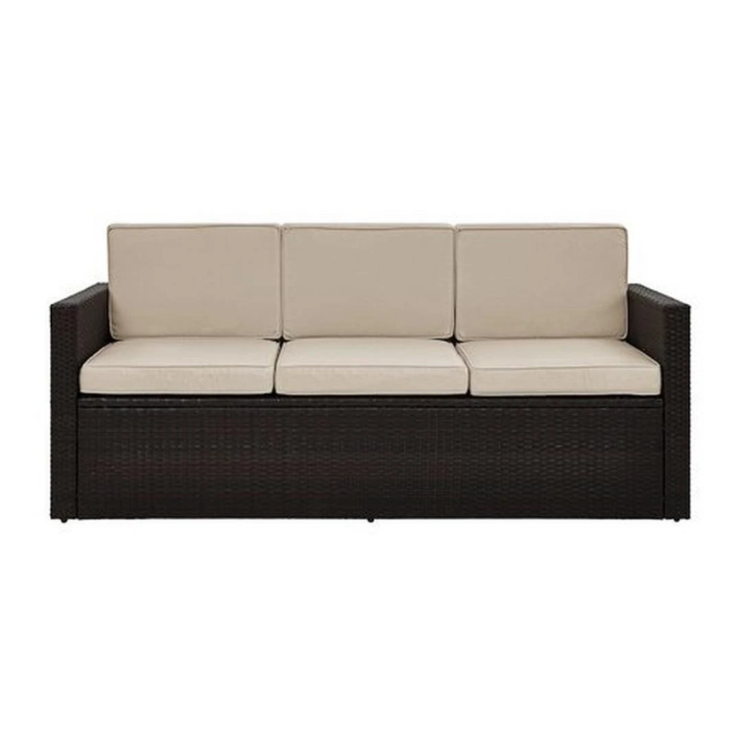 Find yourself relaxing and having an intimate conversation while enjoying the elegantly designed Palm Harbor Outdoor Wicker Sofa. The finely crafted wicker furniture is built to last with all weather components and a durable steel frame. Enjoy life outside with the Crosley Palm Harbor Outdoor Wicker Sofa!