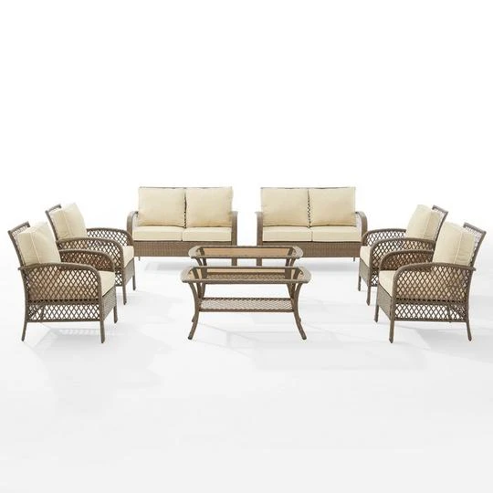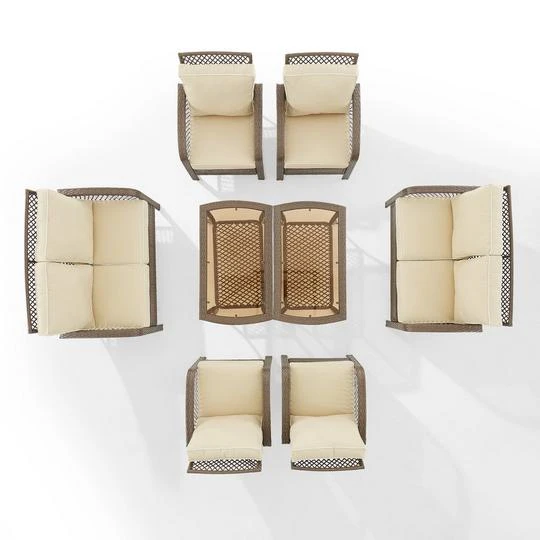 Crosley – Tribeca 8-Piece Outdoor Wicker Conversation Set, Driftwood