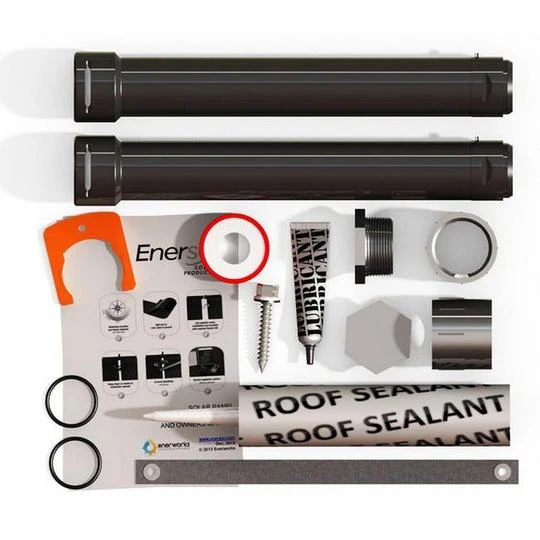 - Includes: installation guide, DVD, warranty card, installation tool, two o-rings, one o-ring lubricant, two header end connectors, one roof sealant, two end caps
