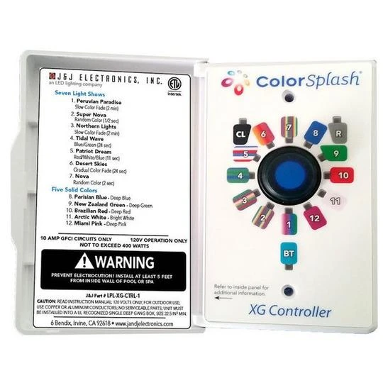 The ColorSplash XG Controller can control up to 5 solid colors and 7 light shows with multiple color blends to create the perfect ambiance for any occasion. The compact size is made to easily replace a light switch and will fit most single gang junction boxes. Now pool owners can control any combination of ColorSplash lights (up to 400 watts) with the touch of a button.