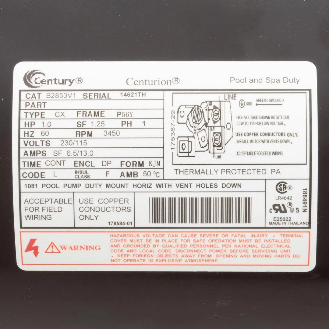 Century Pool Pump Motor, 1.0 HP, 115/230V, 1-Speed, 56YFr, Square Flange, Uprate