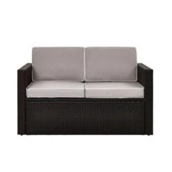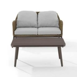 Crosley – Bradenton 5-Piece Wicker Sofa Set With Fire Table, Gray