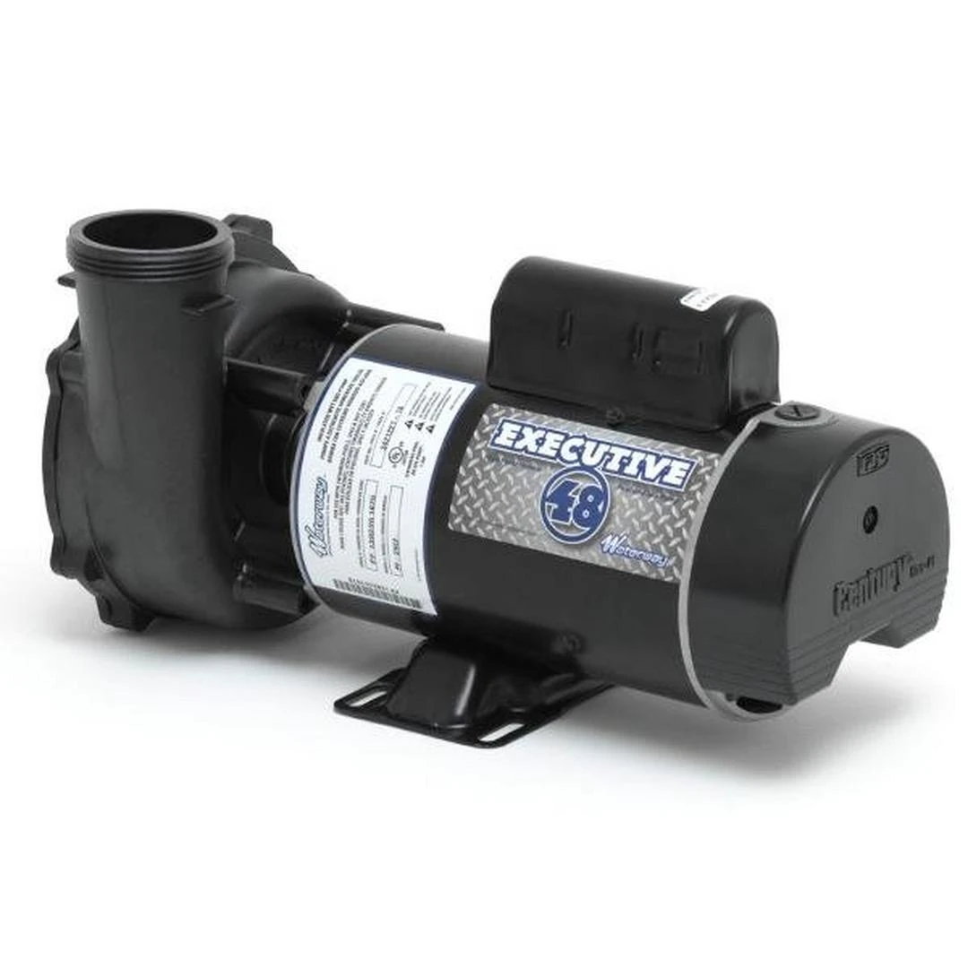 Waterway Executive 48 – 3421221-1A – 3HP Dual-Speed 48 FR Spa Pump, 2″ Intake, 2″ Discharge, 230V spa pump has increased efficiency with its 2-Speed design. The Waterway Executive 48 is thermally protected to extend the life expectancy of the motor and a highly versatile wet end with a large 6-1/2″diameter that can be rotated 90 degrees. It’s specifically designed for 48 frame motors and has a 3HP rating with 230 volts. The Executive has a two year warranty on the motor and a 3 year warranty on the wet end.